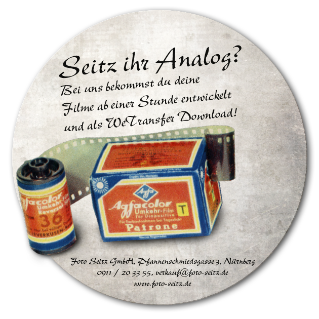 Für nähere Informationen bezüglich dem Analog Bilder Service kontaktieren Sie Foto Seitz unter 0911-203355 oder Sie besuchen uns einfach im schönen Herzen Nürnbergs.